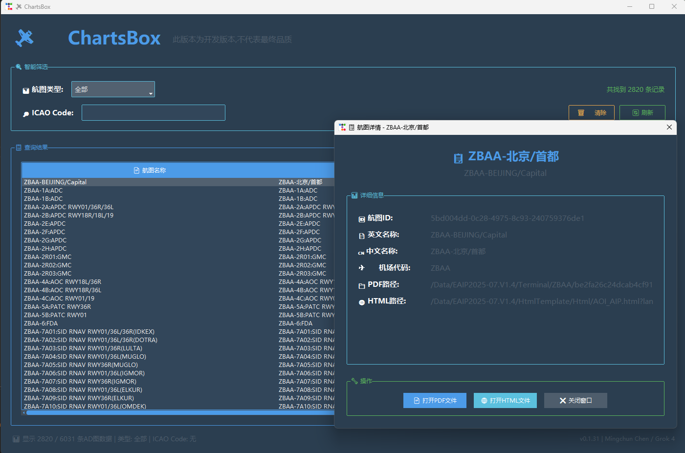 ChartsBox,一个受到ChartViewer启发所衍生的项目,这是一个基于 Python 和 ttkbootstrap 开发的轻量级航图浏览器,专门针对EAIP数据进行整理优化。