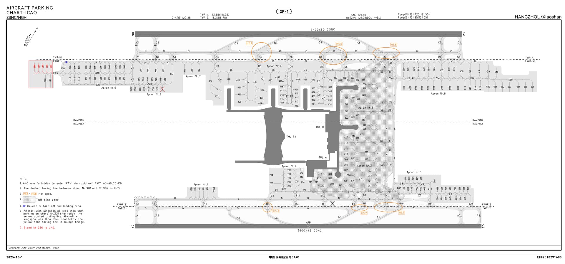 根据AIRAC2511期航图,删除停机位512,714-726,新增停机位428-432,630-636,640,981,982,988-992。