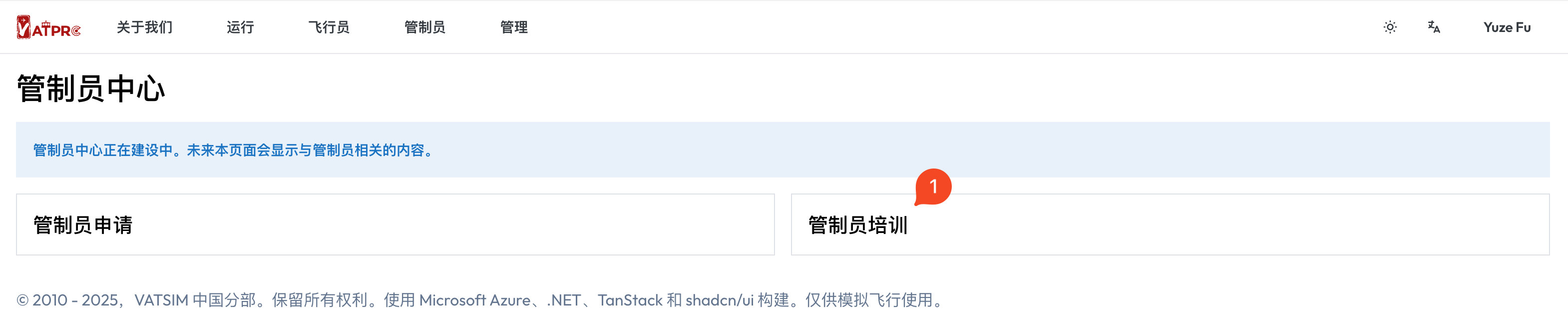 原管制员中心已经完全下线。请通过 VATPRC 首页的「管制员」—「ATC 中心」—「管制员培训」功能查看和申请训练。