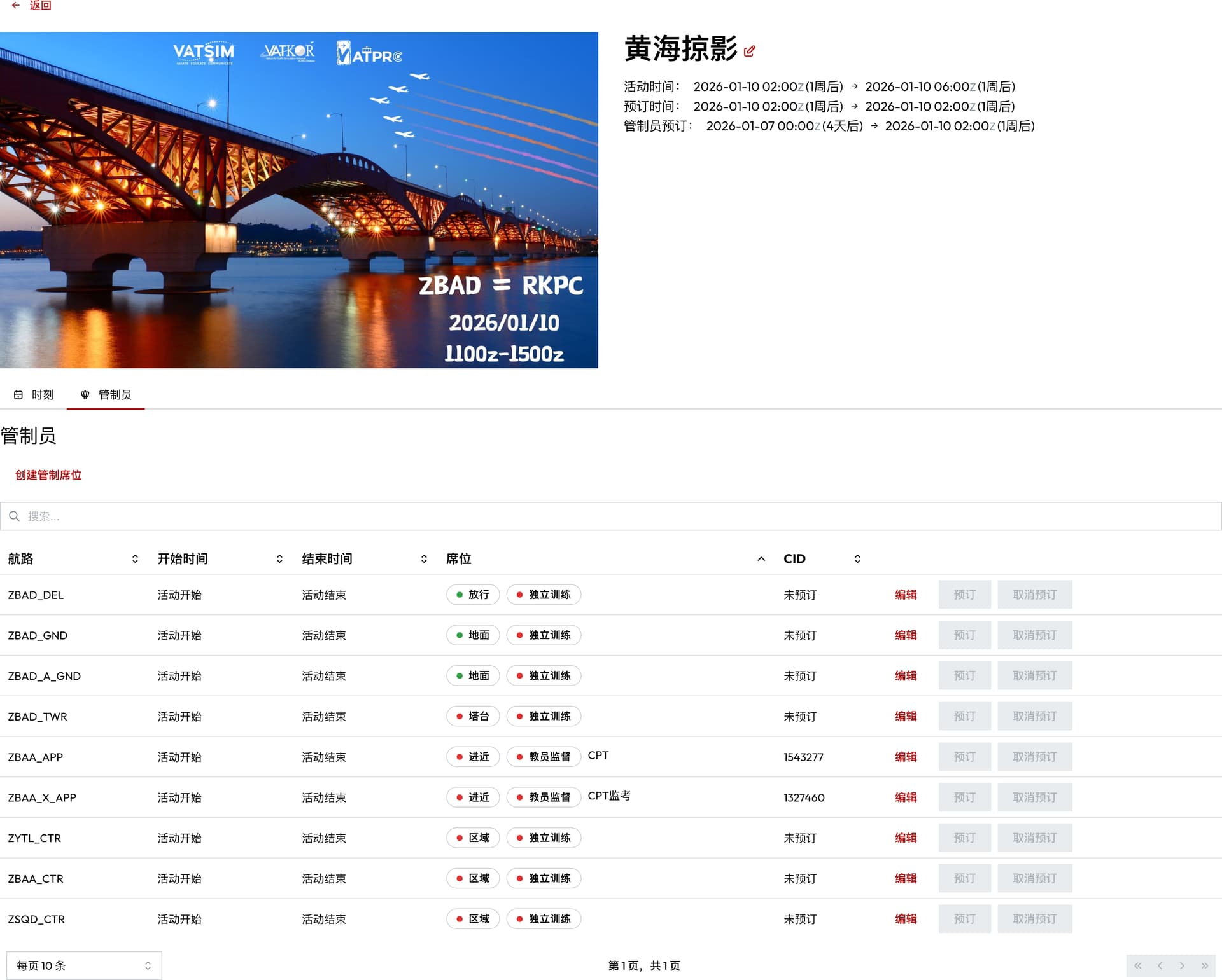 管制员中心的活动功能已经下线。请通过 VATPRC 首页的「关于我们」—「活动」功能访问活动列表和预订管制席位。
