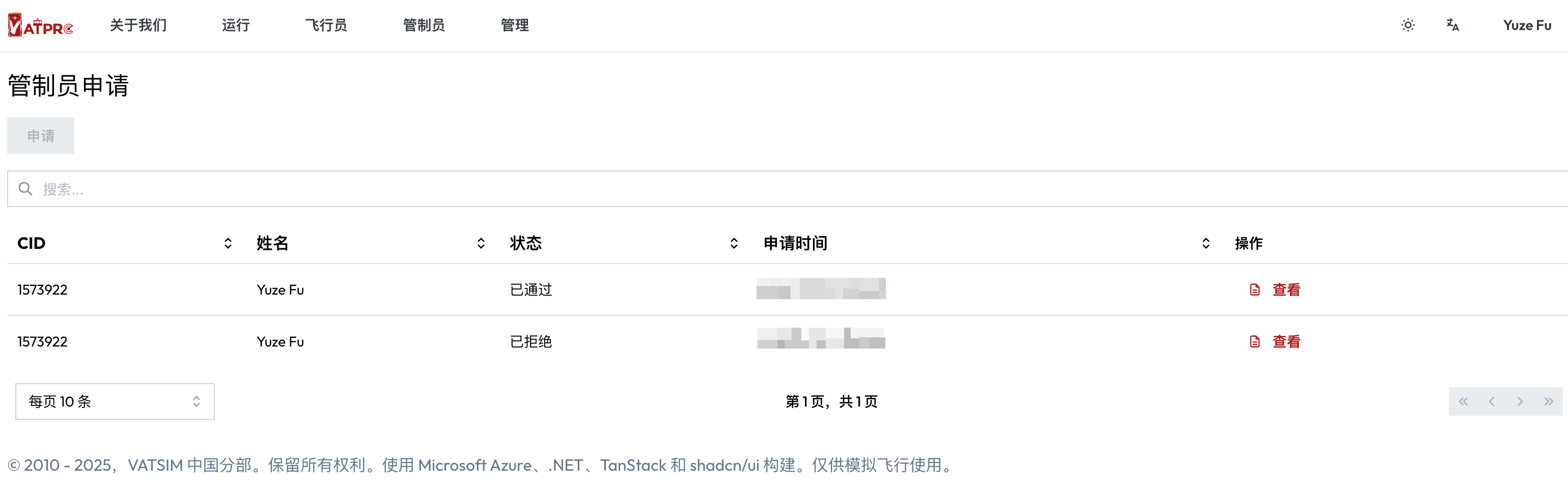 管制员中心的管制员申请功能已经下线。请通过 VATPRC 首页的「管制员」—「成为管制员」功能申请成为管制员和查看管制员申请。