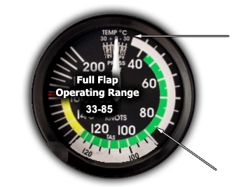 - 全襟翼展开运行空速范围33KIAS到85KIAS