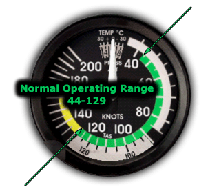 飞机飞行速度进入此范围(129-163KIAS), 飞行员需要保持警惕, 并且只有在平稳气流中允许。