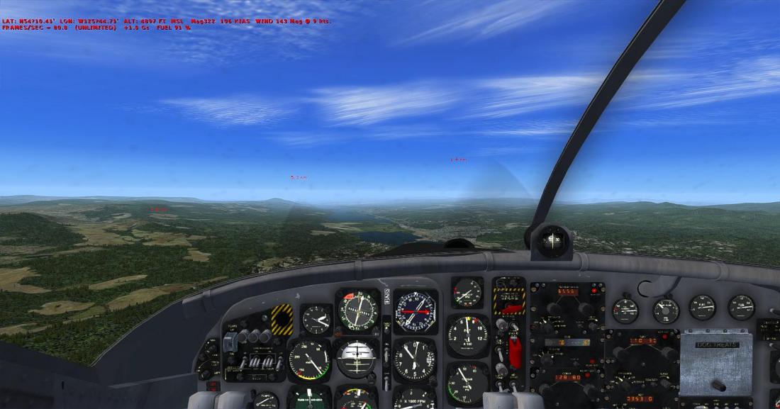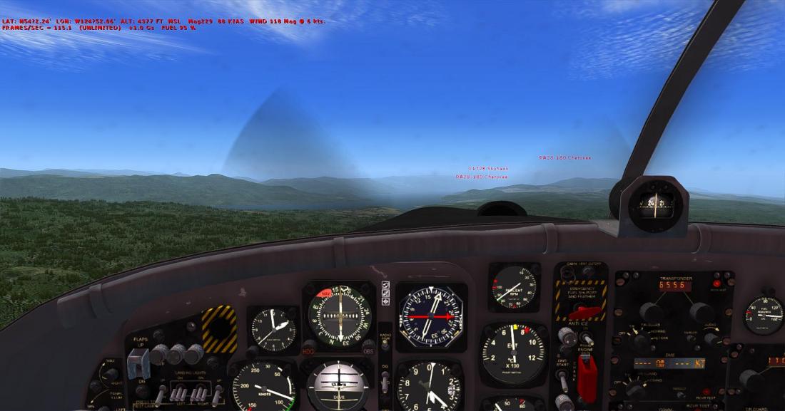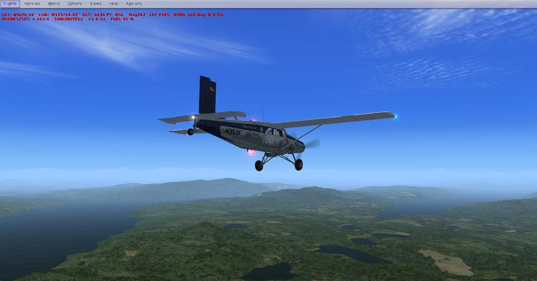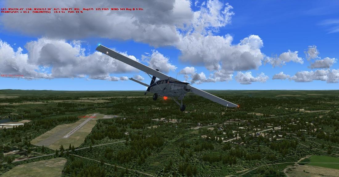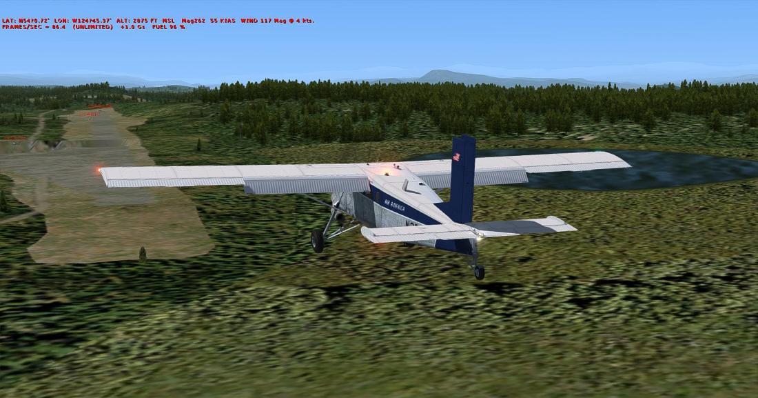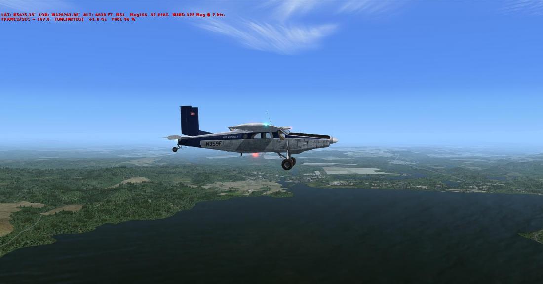 起飞后大致航向飞197,向西南方向穿越丘陵地带后,抵达在弗雷泽湖南侧的弗雷泽湖机场(CBZ9_FRASER LAKE)。