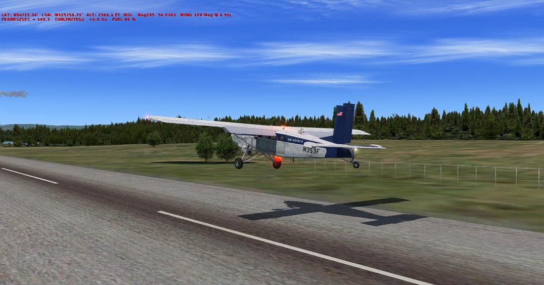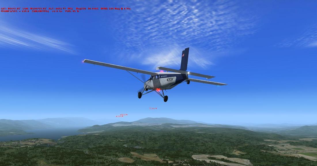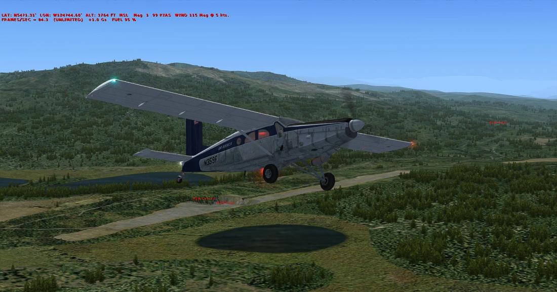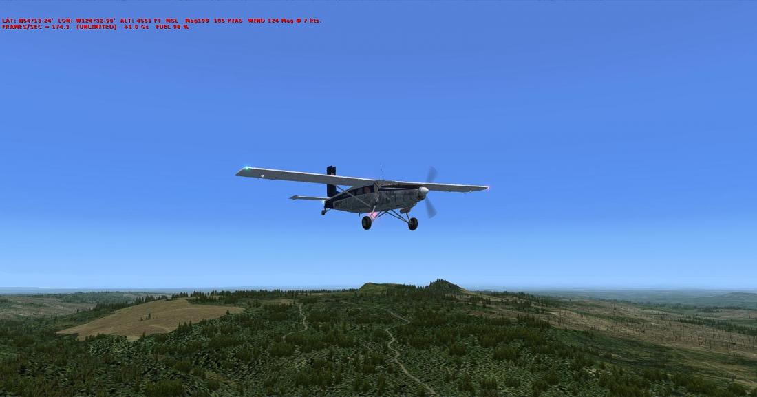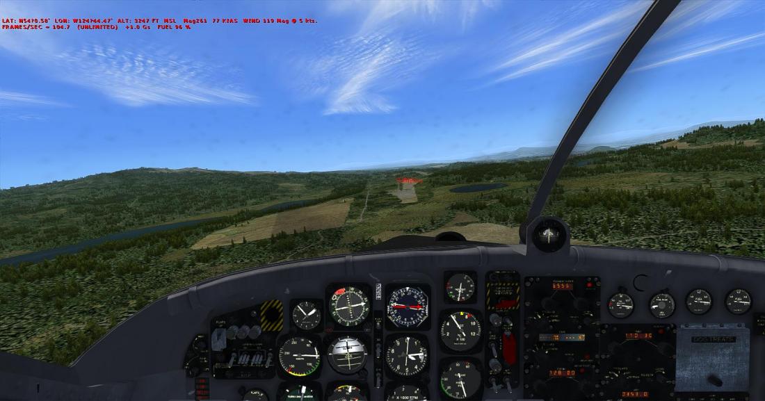 从矿区上空右转航向西北,大致飞285。目视切辛克湖(Tchesinkut Lake)后转向北,参考16号公路并最终在伯恩斯湖机场降落(CYPZ_Burns Lake)