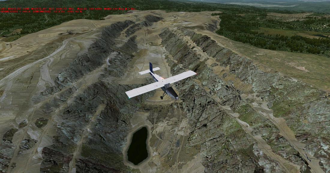 Orbx这个煤矿是特意制作的,在地景制作时,他们肯定参考了Google Earth的数据,我们稍后来对比一下。