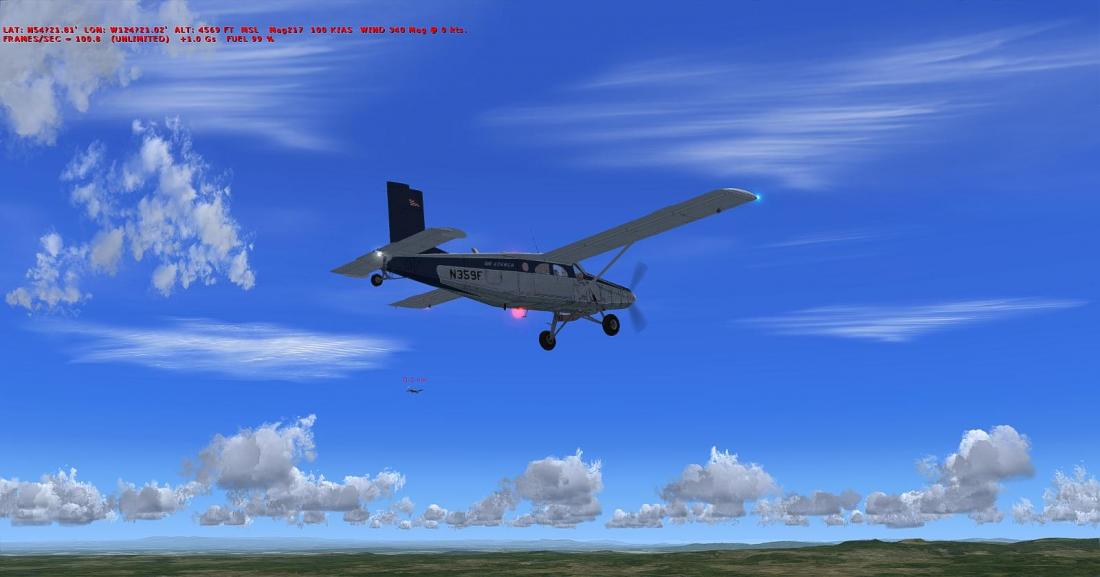 天气开始更新了。我们越往西南方向飞,天气越好,不一会稀稀拉拉的云都不见了,蓝天万里无云。