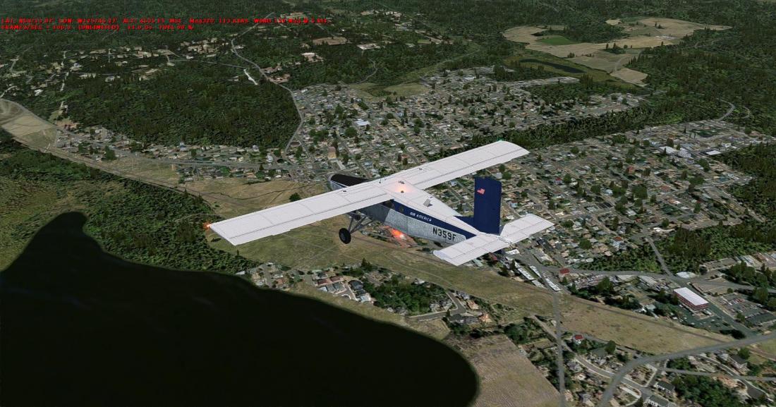 目视到机场南侧的伯恩斯莱克市,目的地马上到了。