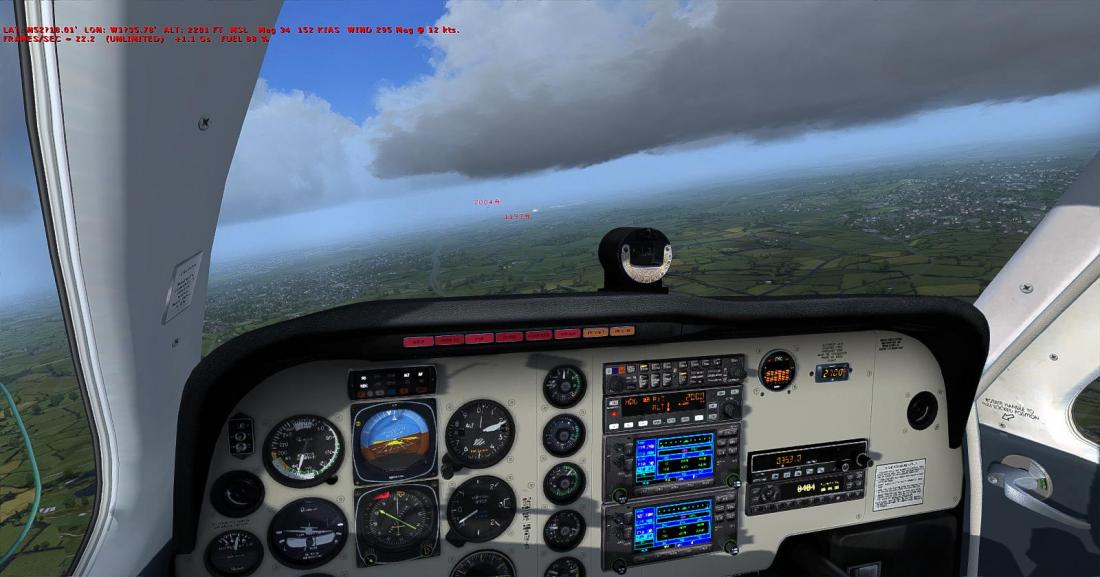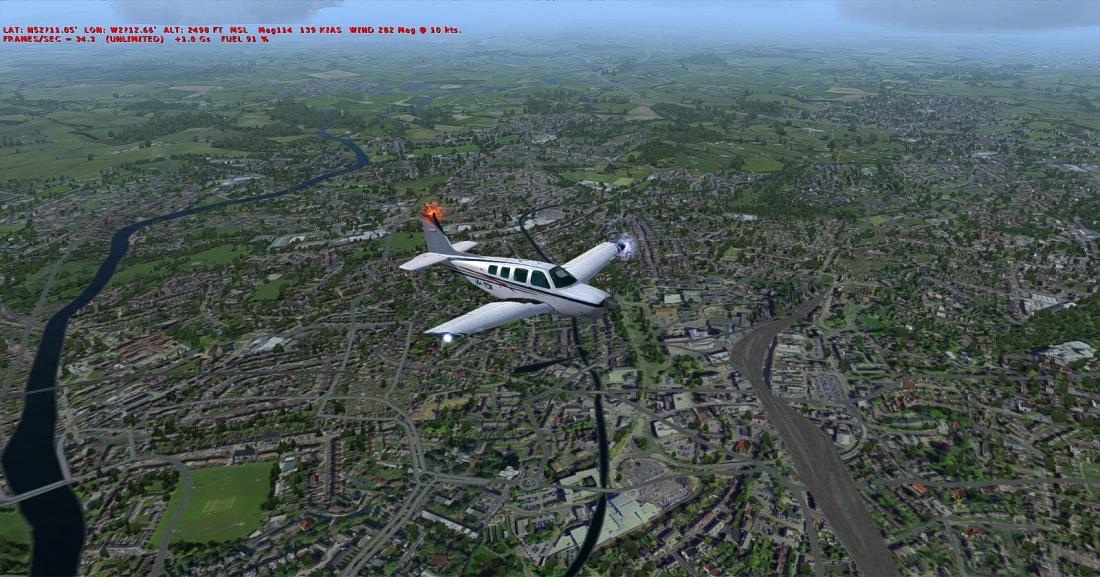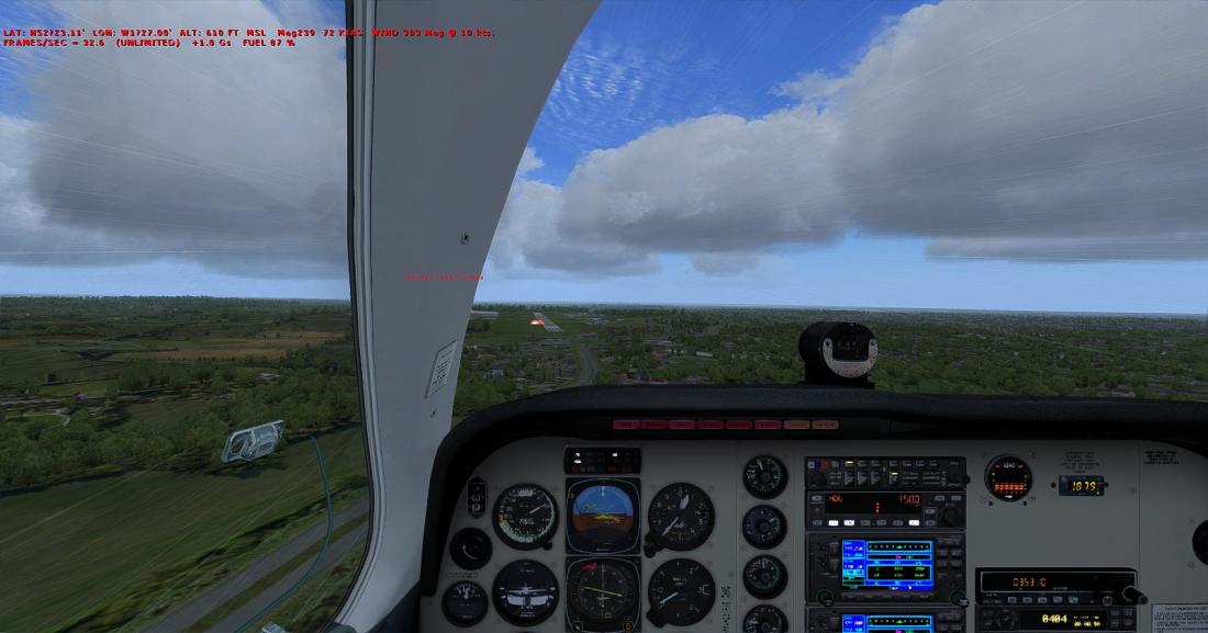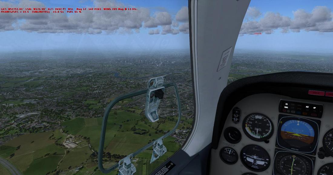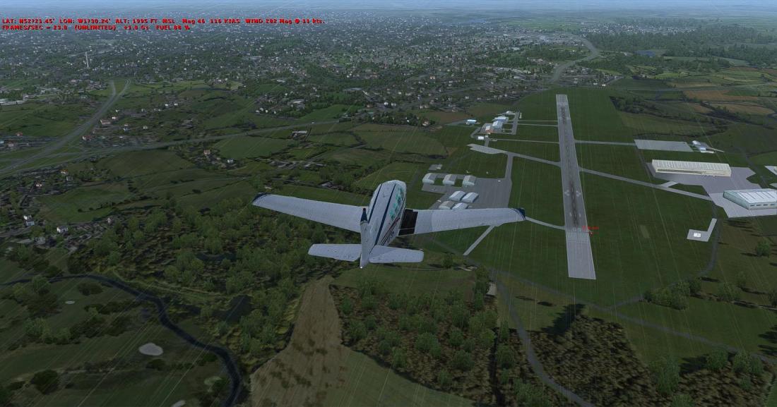 由于间隔原因,我在考文垂机场上空通场而过,准备在对面跑道落地。