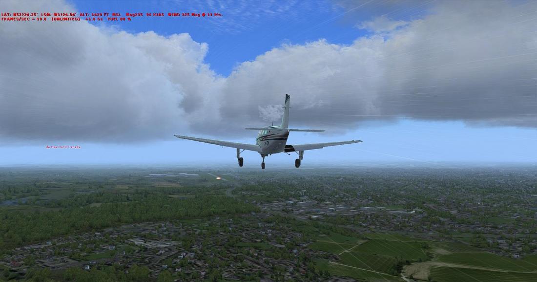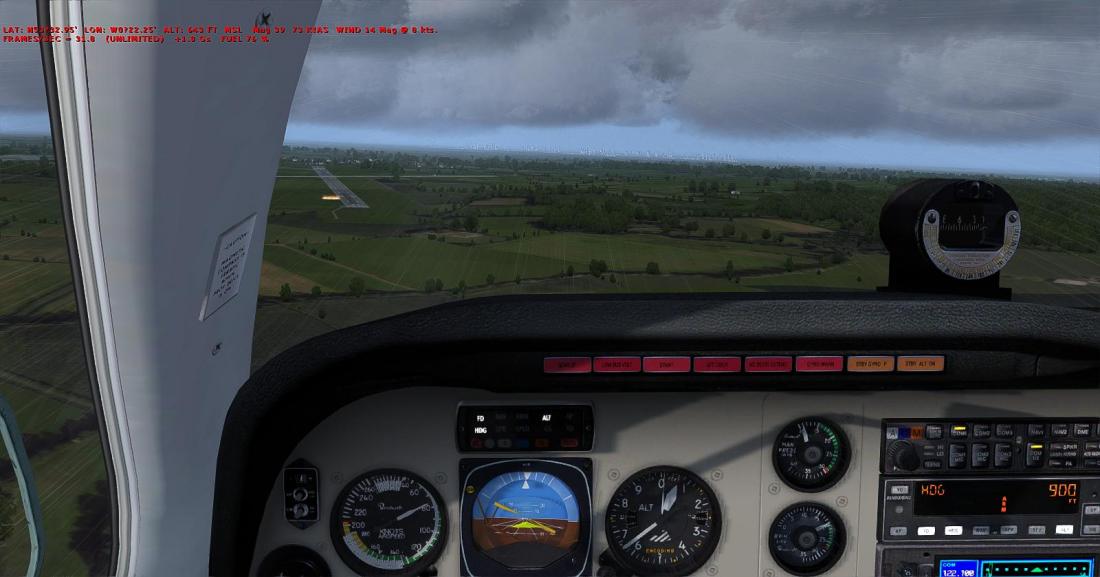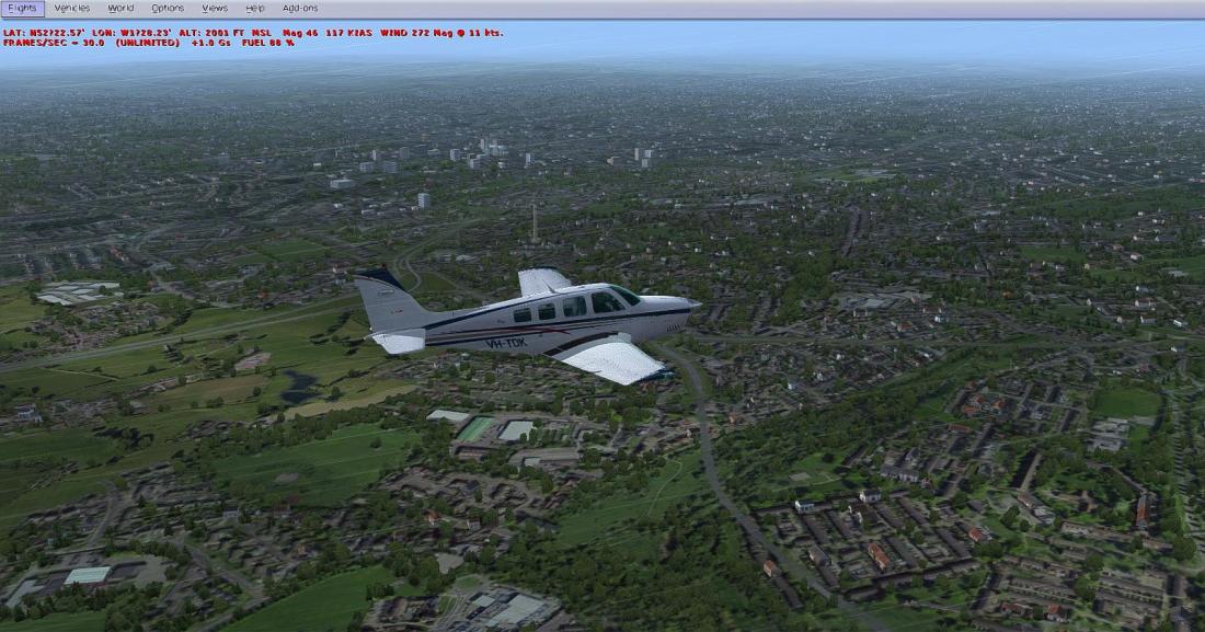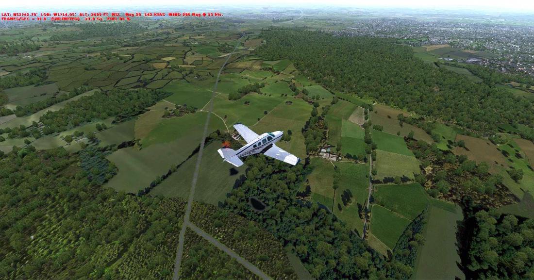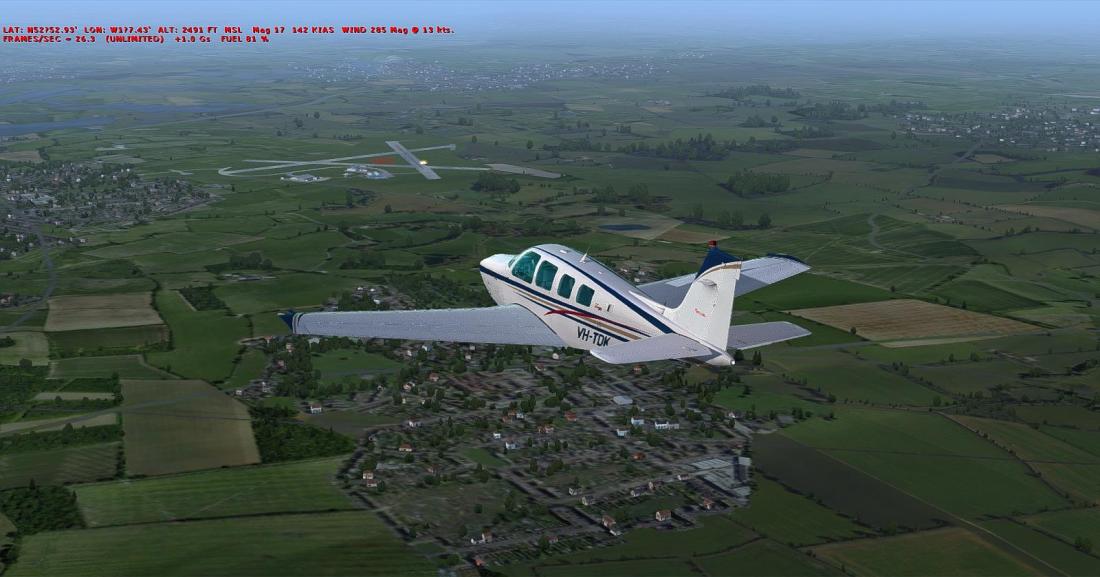 由于间隔原因,我在考文垂机场上空通场而过,准备在对面跑道落地。