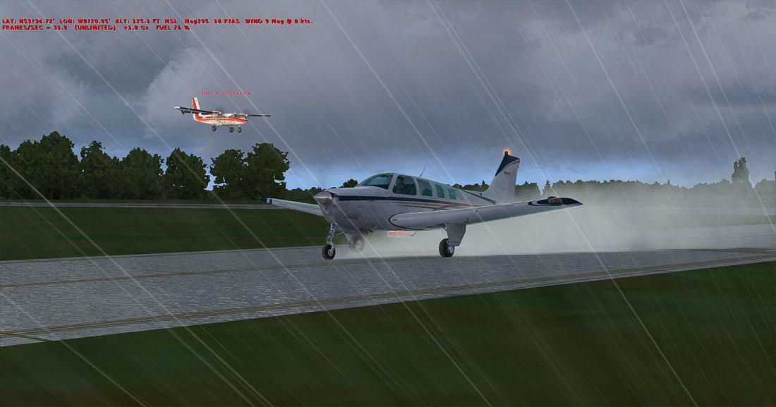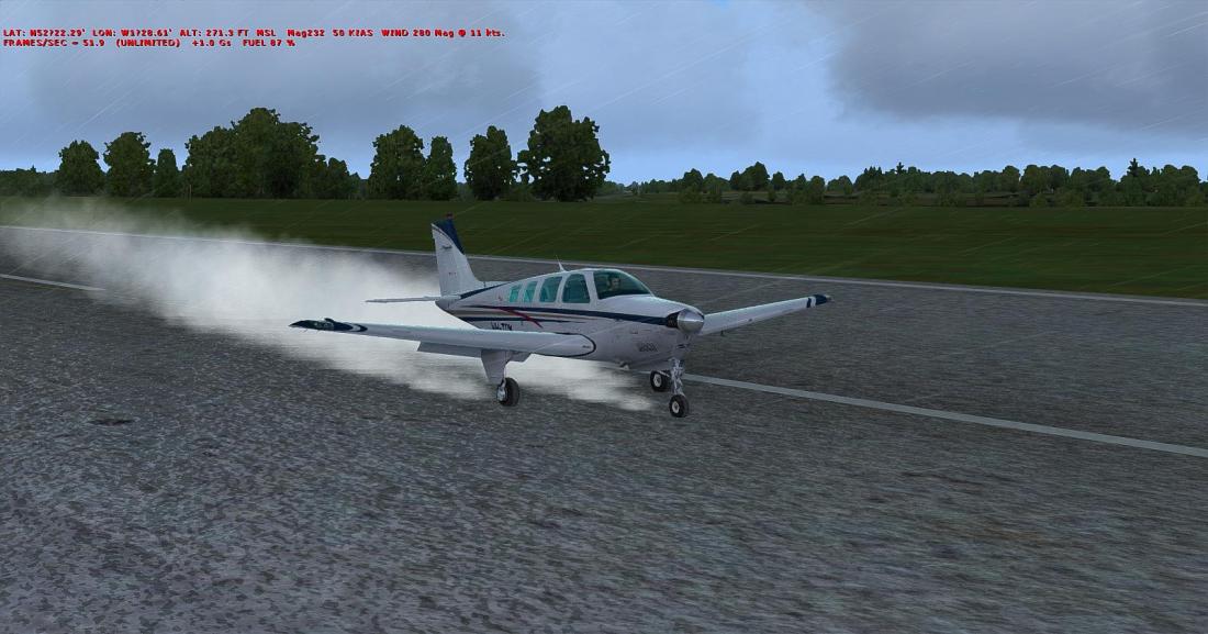 雨中跑道湿滑,尽量控制好接地速度和接地率,如果落地急刹,飞机肯定就甩尾滑出了