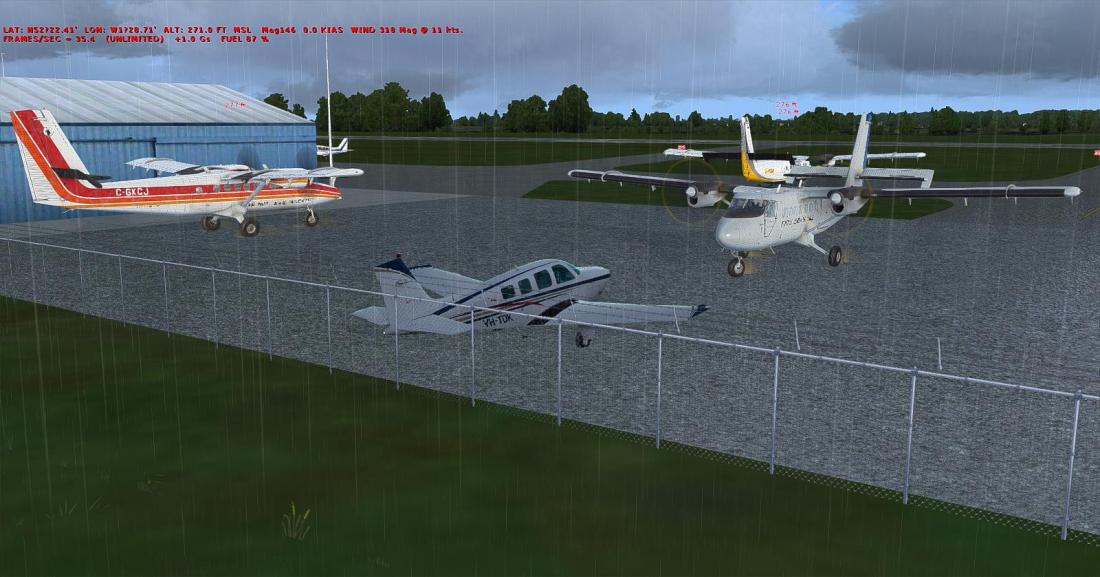 在小机场EGBS上空,我们碰到个英国飞友在冒雨用PA-28练习五边飞行,他的注册号是G-LIZI