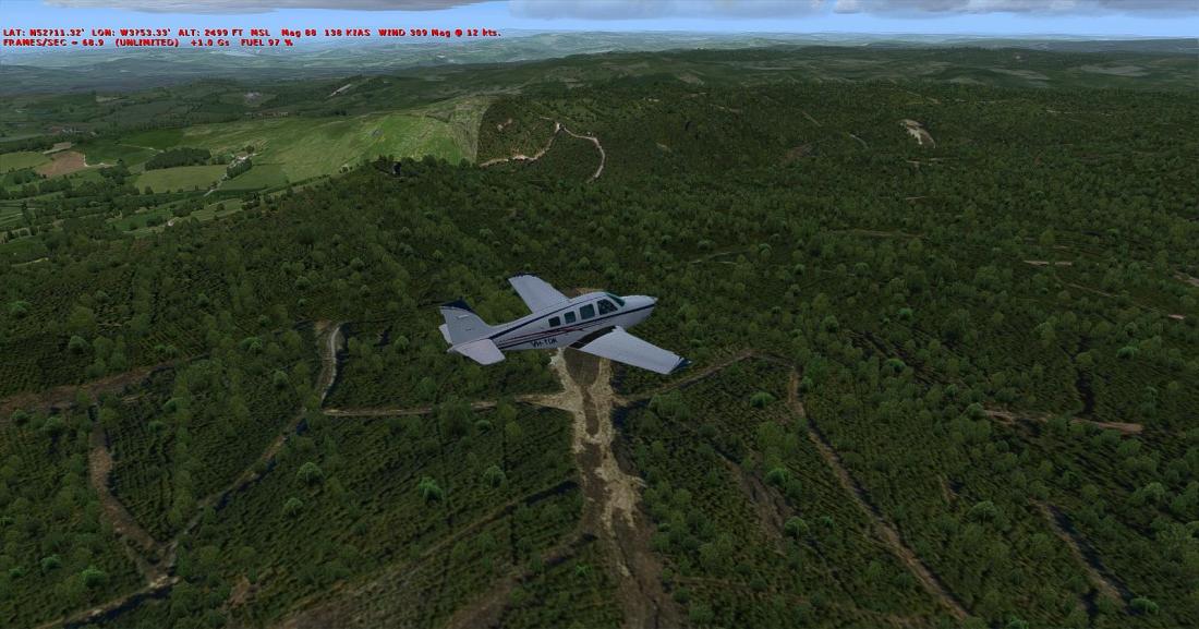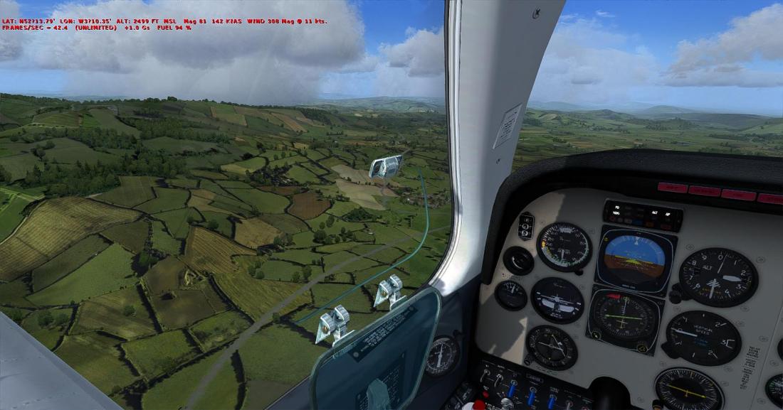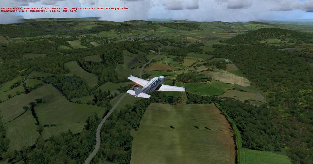在飞过几个小山包之后,我逐渐目视了A44号公路。