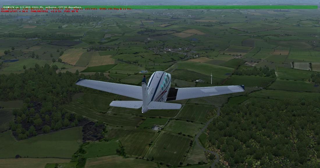 起飞机场为阿伯珀斯机场(ABERPORTH/WEST WALES_EGFA),起飞后航向084,跟随高速路A44直飞到考文垂机场落地(COVENTRY_EGBE)
