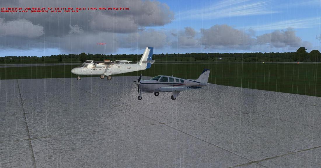 由于雨一直未停,且越下越大,非常影响目视飞行效果。