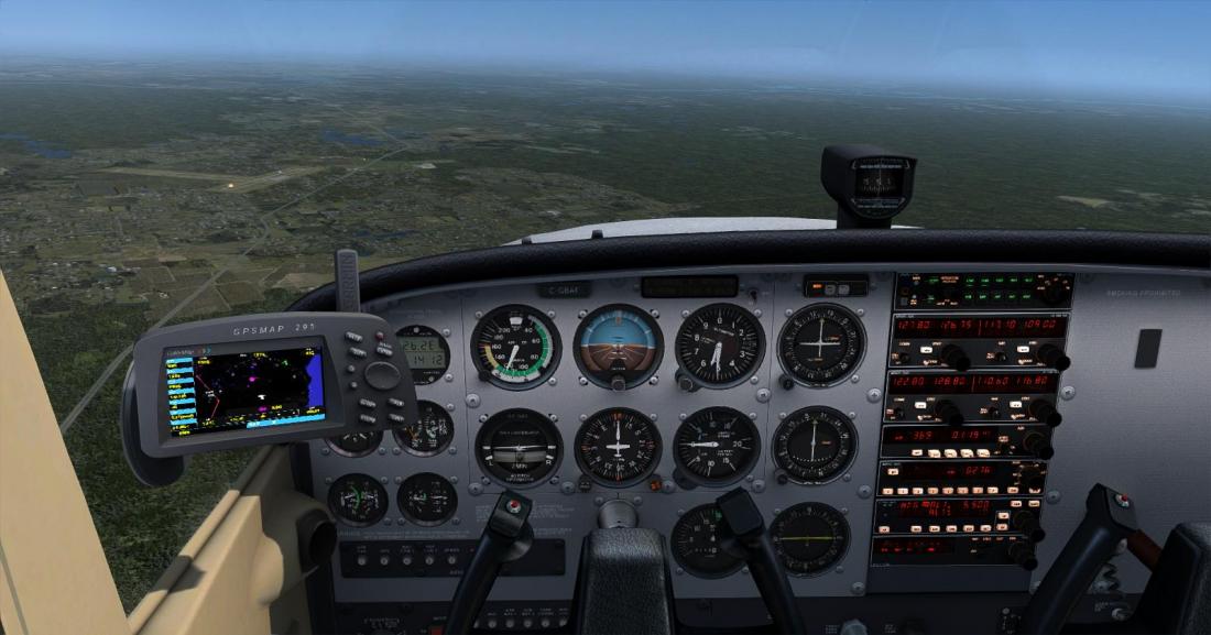 跟随者NDB台,很容易我们就飞到了台的上空。 脚下的机场是KCXU,这也是NDB台所在的机场,这是第一个目视参考点。 这时候已经很容易发现我们左侧的19号高速了,后面的飞行直至落地我们都将跟着它走。