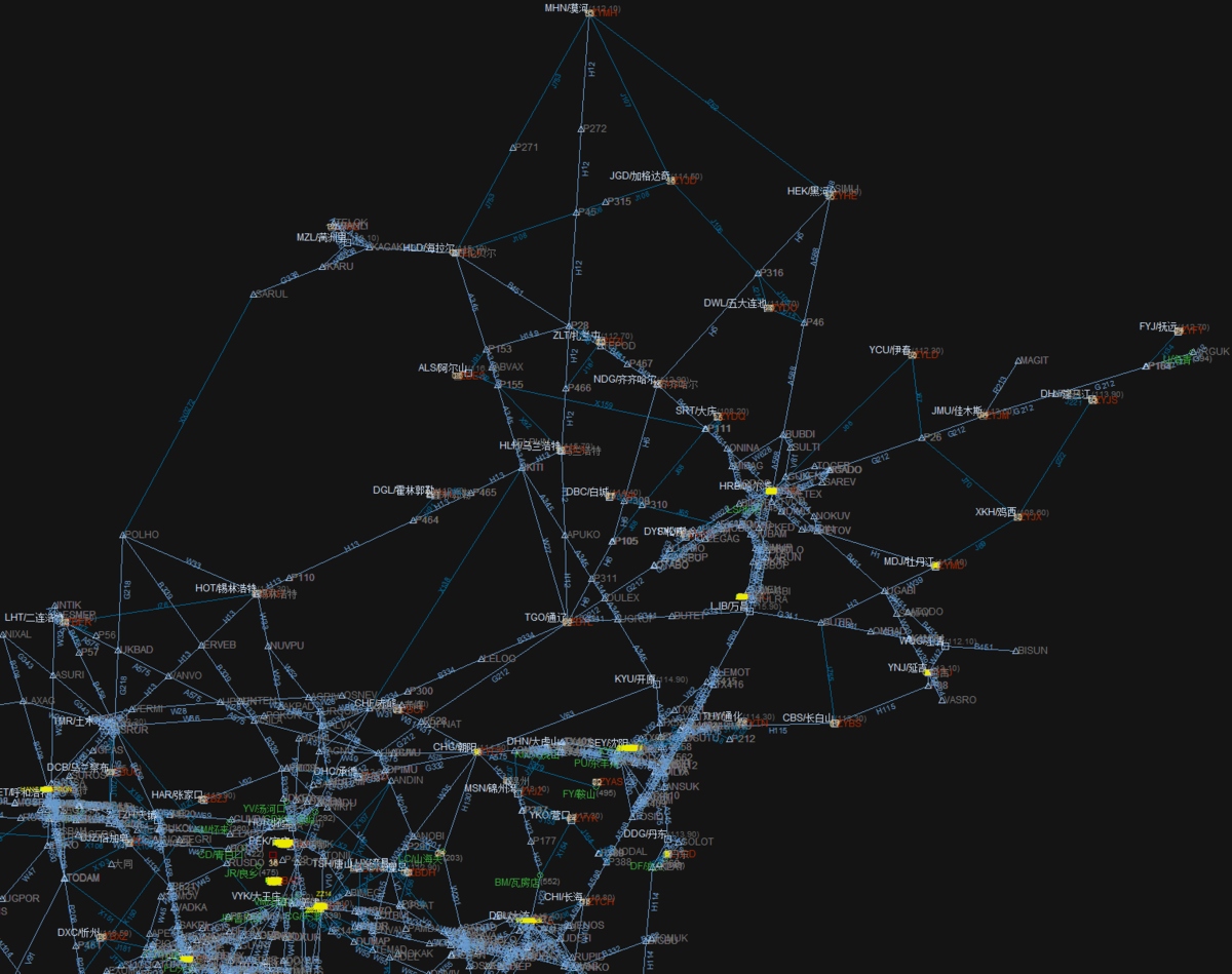 以及全国的高空航路数据(不包含其他区域的地面扇/进离场预测线)